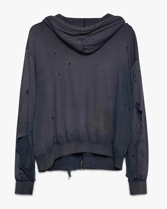 Distressed Navy Blue Thermal Lined Zip-Up